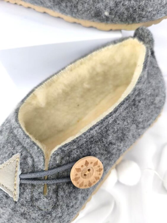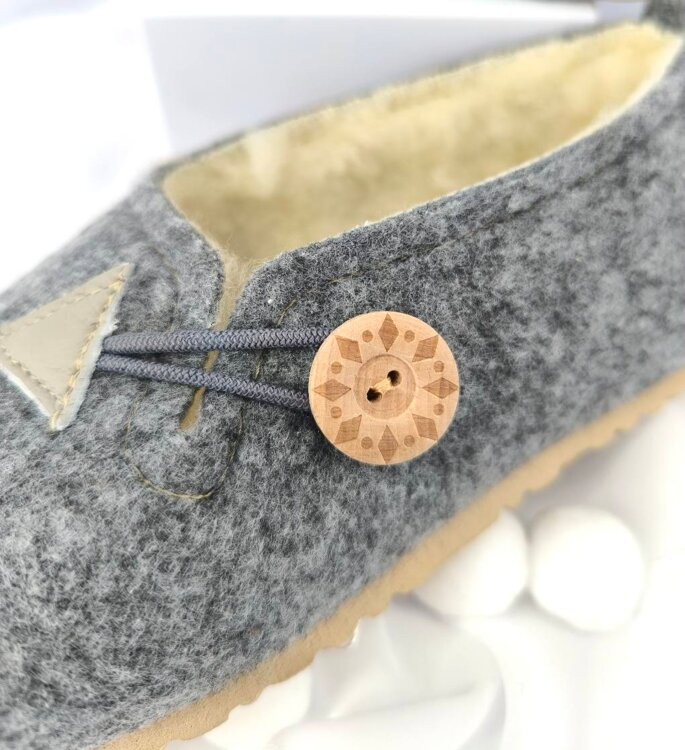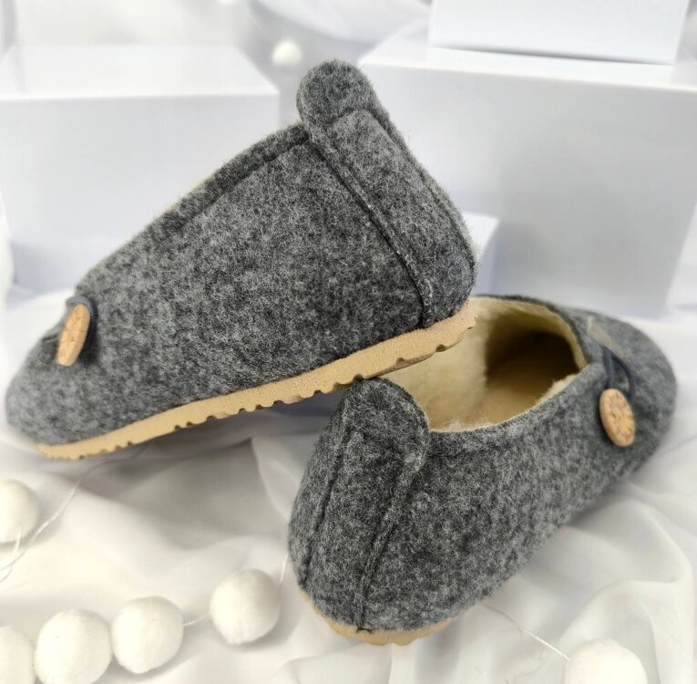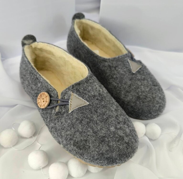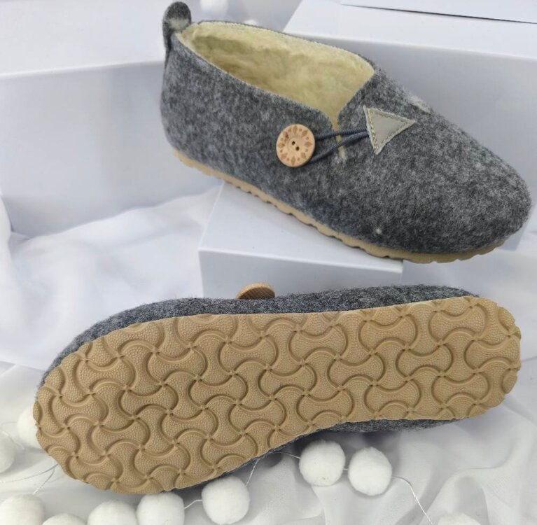 Tieto papuče sú vyrobené z kvalitnej plsti s mäkkou vnútornou vrstvou z ovčej vlny. Materiál výborne udržiava teplo, zároveň je priedušný a pohodlný na nosenie počas celého dňa. Jednoduchý dizajn dopĺňa ozdobné zapínanie s dreveným gombíkom. Ideálne ako domáca obuv na chladnejšie dni. ❤️